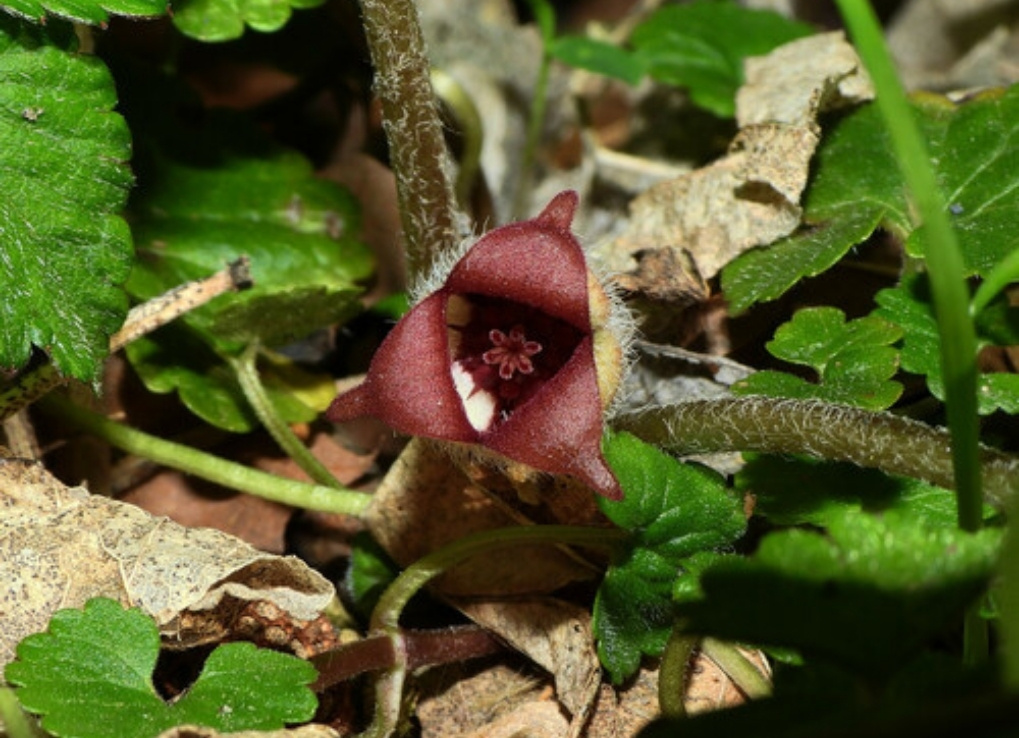 Wild ginger (Asarum canadense), a groundcover ephemeral flower whose roots smell and taste faintly of culinary ginger. Photo by Emilio Concari on iNaturalist.