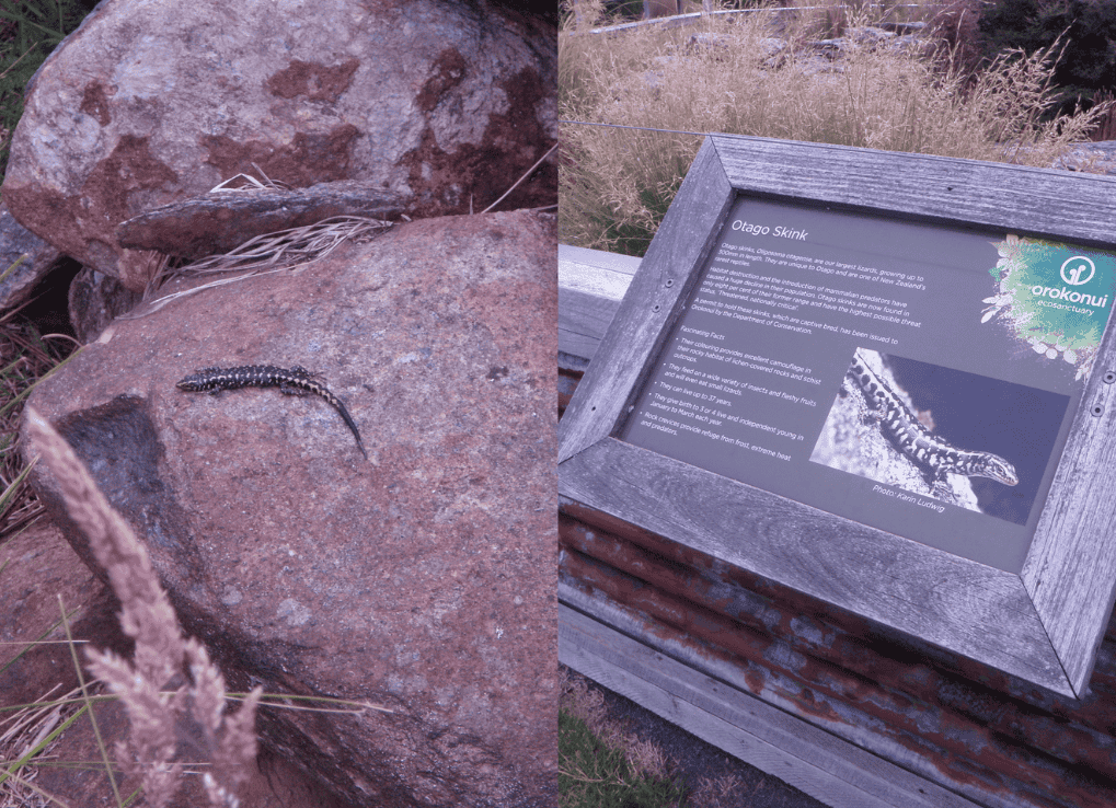 This community-led conservation venture is aimed at protecting, managing and enhancing some of New Zealand’s most significant habitat and species. The predator resistant fence ensures invasive introduced mammals stay out – thus maintaining Orokonui as a safe haven for some of New Zealand’s (and the world’s) rarest wildlife. Of most interest to me of course, were the reptiles: Tuatara, Green Skink, Otago Skink, and my favourite, the Jewelled Gecko (Naultinus gemmeus), call this place home.