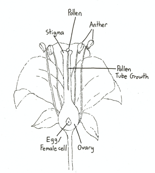 The relationship between flowers and pollinators is mutually beneficial. The rules are unspoken, and the flowers did not sign a contract with the bees. Flowers provide pollinators with access to nectar and pollen, which is vital to provisioning for their young. In return, pollinators transfer pollen from the anther (where the pollen is produced) of one flower, to the stigma of another flower. If the flower is of the same species, the stigma triggers pollen tube growth which facilitates the transfer of male cells to the plant ovary.