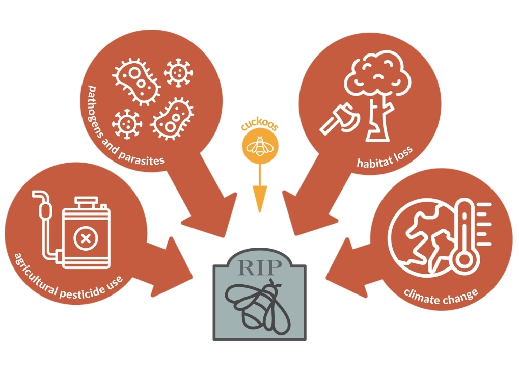 The impacts of cuckoos and predators on bumble bee populations are miniscule compared to the impacts of their major threats: agricultural pesticide use, pathogen and parasite spread from commercial bee facilities, habitat loss, and climate change.
